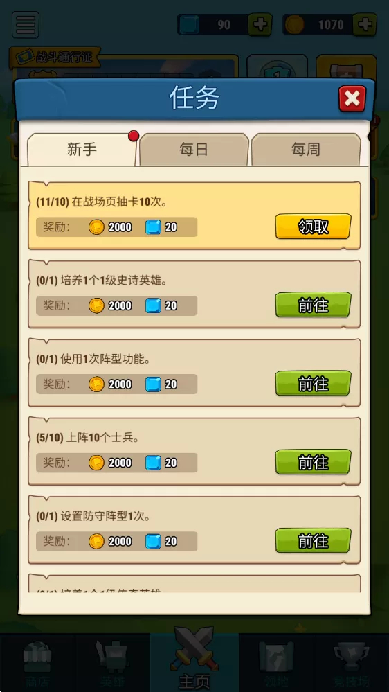 6、回到主界面,还有任务可以完成,获得丰富的奖励。