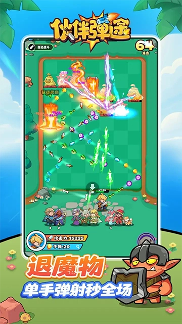 单手操作,简单易上手:瞄准、蓄力、发射,单手就能玩转游戏,自动战斗功能解放双手,升级闯关全交给系统。