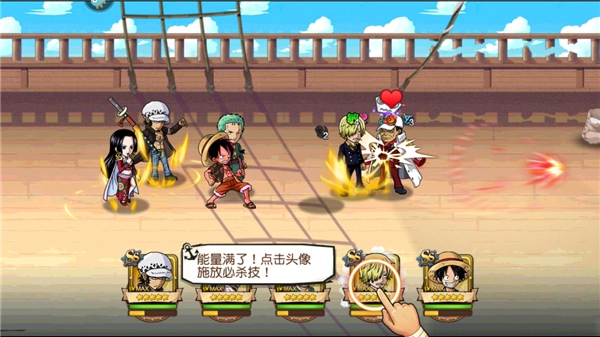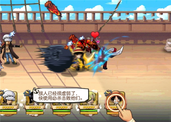 当敌人的血条所剩无几时,我们只需点击角色头像,释放必杀技就能轻松将其击败。