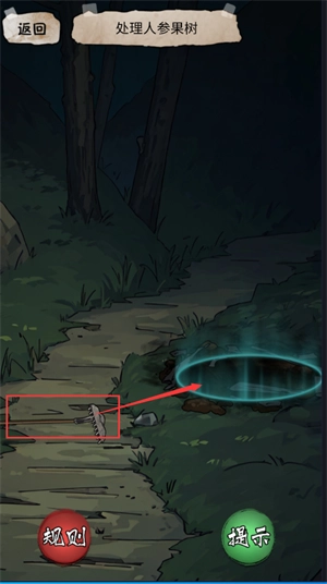 用旁边的钉耙拖到发光地面