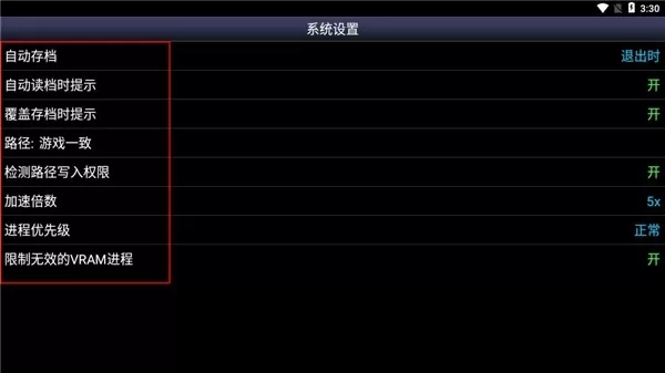 6、玩家还可以设置自动存档、自动读档等游戏设置。