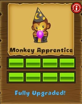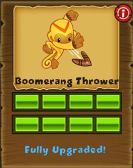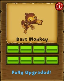 每发飞镖的攻击目标数从2个气球提升至3个气球,随后发射数量增加为每次三枚,最后新增“变身”技能,能将攻击范围内的飞镖猴转化为超猴。