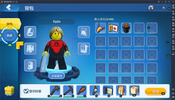 接着就能查看背包内存储的物品数量,点击背包里的物品与快捷栏可进行交互放置,不过当前重点是点击合成按钮来制作物品。