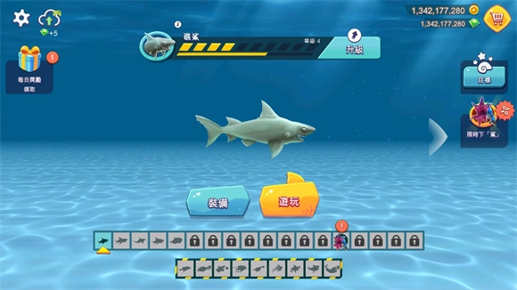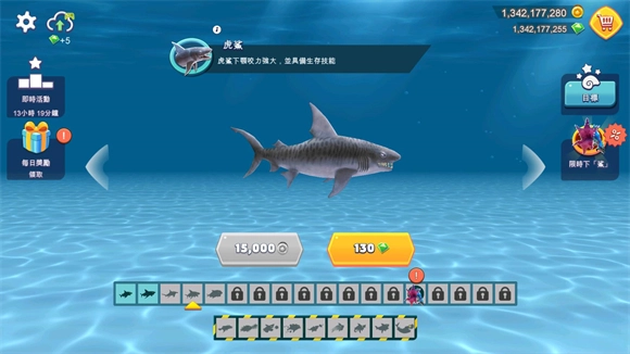 新手入门建议,关于鲨鱼的解锁顺序,可以按照这样的步骤来:先解锁礁鲨,接着是灰鲨,然后是锤鲨、虎鲨、白鲨、电鲨,最后再解锁黑锤鲨。