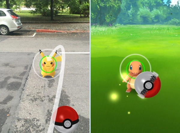 当周边出现精灵的踪迹时,手机会弹出提示,引导玩家前往精灵所在之处。玩家可在屏幕上查看精灵的外形与名称,然后向它投掷精灵球,试着将其捕获。精灵球能够在“PokéStops”商店中购买,这些商店类似Ingress里的Portal,是由玩家通过投稿提交的形式在游戏中注册的现实世界地标,像著名的建筑物或者雕塑之类的都可以成为其选址。