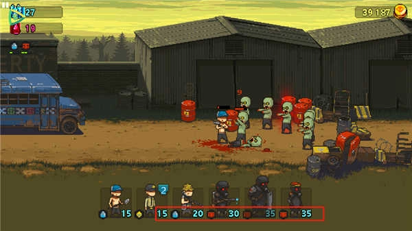 除了持续派兵剿灭僵尸,我们还能投掷油桶对僵尸造成伤害,在战斗进程里可以不断收集勇气值、金币、油料这类资源。值得一提的是,要是我们的伙伴牺牲了,部分类型的僵尸会把他们同化,这就意味着你的敌人会变多,完成任务的难度也会增大。