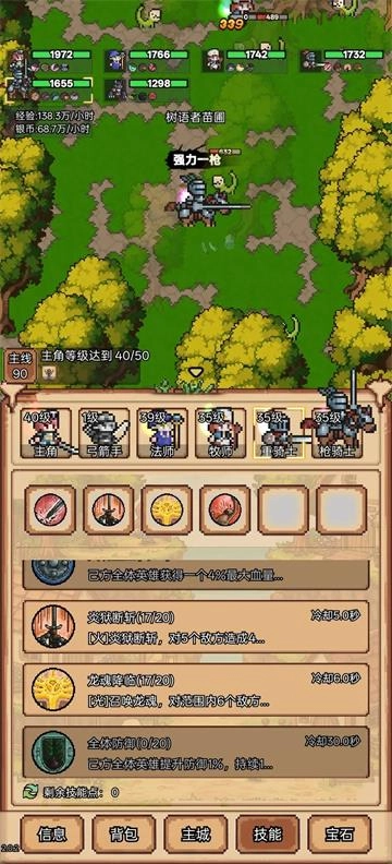 解锁思路:核心围绕刷怪效率展开,挂机收益直接影响推进速度。法师和弓箭手是野外刷怪的强势选择,牧师表现也尚可,其召唤的熊宝宝具备群体攻击能力。重骑士的抗压能力出色,能支撑我们多挑战几层副本。枪骑士则建议放在最后,用来补充输出伤害。