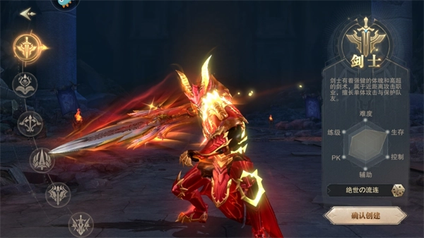 剑士是近战物理输出职业,拥有出色的生命值与防御力。其技能以近身爆发和控制为主,例如“袭风刺”能快速突进敌人并造成多段伤害,“地裂斩”则可对范围内敌人造成高额伤害并附带短暂眩晕效果。该职业非常适合偏好冲锋在前、承担前排伤害同时输出高额伤害的玩家选择。