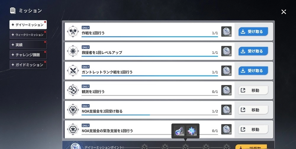完成每日任务并达成指定活跃值后,就能获取培养材料与抽卡资源。
