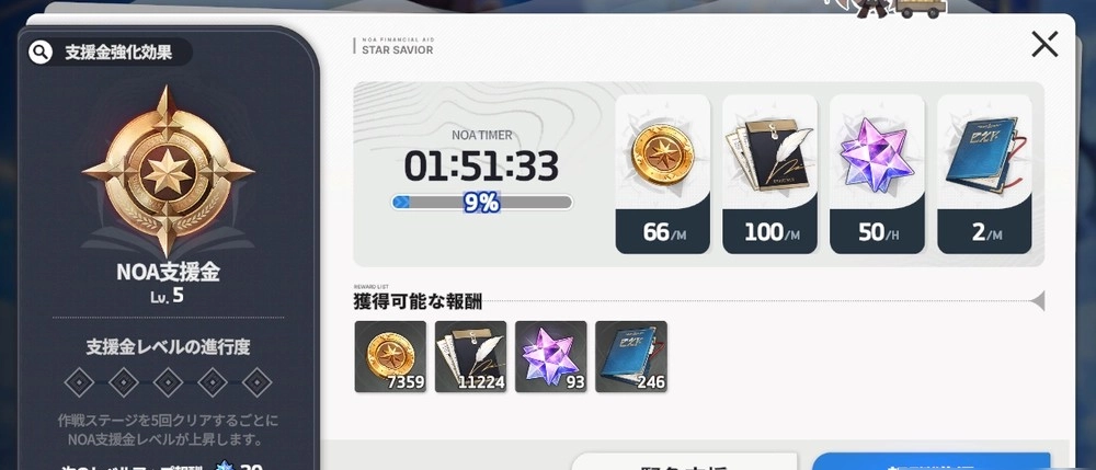 作战进度会对NOA补贴里能拿到的材料数量产生影响,这也是拉开与其他玩家养成度差距的因素之一。