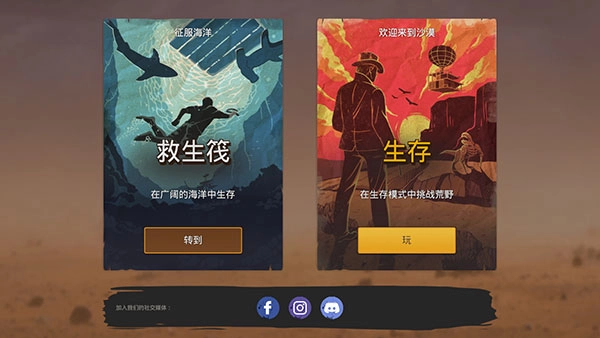 进入游戏后,选择右侧的生存模式,就能进入沙漠地图开始游玩了。