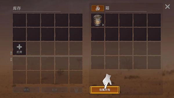 左边展示的是库存物品,右边是盒子里的物品,点击“收集所有”就能完成采集。