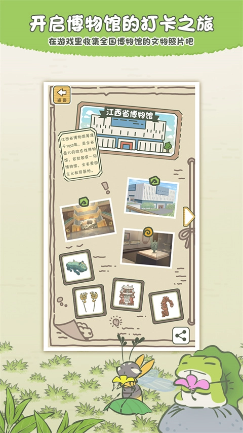 玩家能够让小青蛙外出旅行,记录下形形色色的风景,还有更多的奇闻趣事。