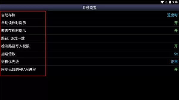 6、玩家也能够进行自动存档、自动读档等游戏相关设置。
