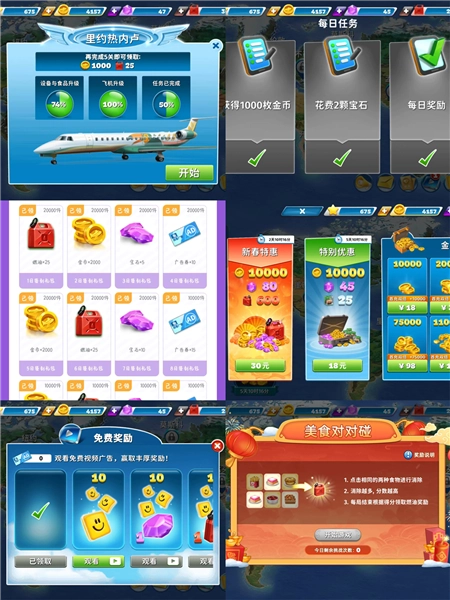 飞机大厨最头疼的问题就是燃油不足,想要获取燃油,可以通过参与活动、每日签到、完成任务、观看广告或者购买礼包等途径。另外,每通关五个关卡,还能得到金币、燃油和钻石的奖励。