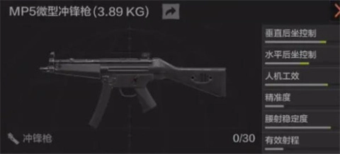 MP5作为冲锋枪,射速和稳定性表现十分突出,在游戏里近距离作战时稳定性也相当出色。再加上获取难度和上手难度都不高,是非常值得推荐的武器。它对配件的要求不大,新手也能轻松压枪,只是伤害偏低,远距离作战表现较差,但整体效果还是很不错的,强烈推荐。