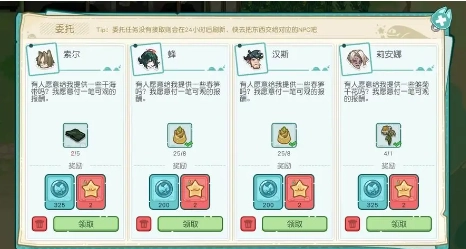 只需打开手机,就能查看各位NPC发布的委托,为他们备好所需物品并送达,就能获得树币和公民经验作为报酬。
