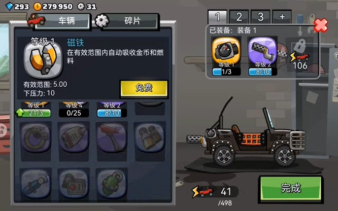 拉力赛车、岩石弹跳车、野兽车、跳跳车:308.84万金币