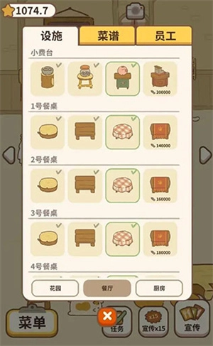 餐厅内的设施可以持续升级,等级越高,不仅功能会更完善,外观也会愈发美观。