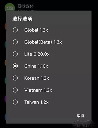 注意”游戏变体“很重要,如果你要玩《和平精英》就要选择”China 1.10x\",国际版的话就选\"Global 1.2x\"。
