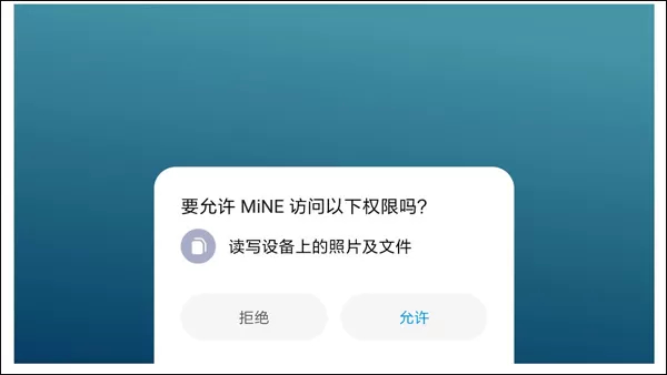 开启MiNE如果没有存储权限则会弹出授权请求