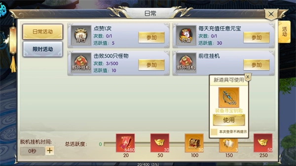 完成日常副本里的打怪、挂机任务后,还能获取专属充值卡与绑定元宝。
