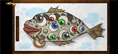 这个游戏很简单,只要让两次点击选中的鱼眼颜色相同就可以了,最后会有一只眼睛闭合,点击它就能获取鱼眼。