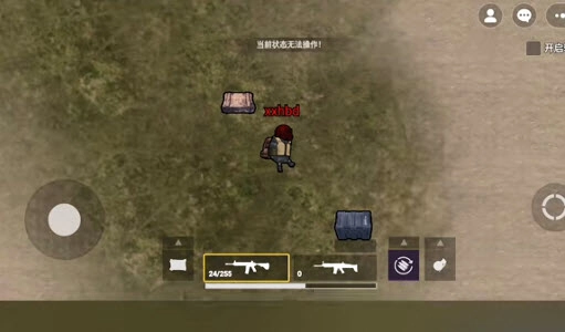 进入游戏后,左侧区域用于操控角色移动,右侧区域负责控制射击操作。背包与地图的功能按钮设置在左边,当靠近物资箱时,点击即可开启并收集其中的物资。待收集完物资,前往绿色标记的地点就能完成撤离。