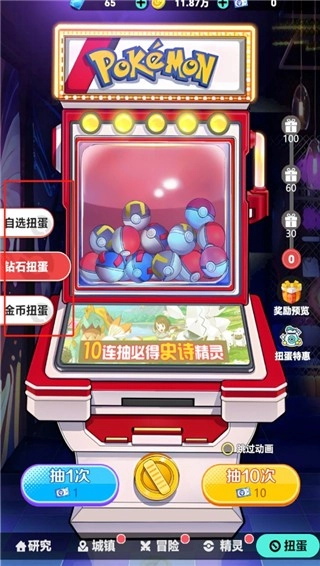 玩家还能挑选抽取模式,包含自选扭蛋、金币扭蛋和钻石扭蛋。