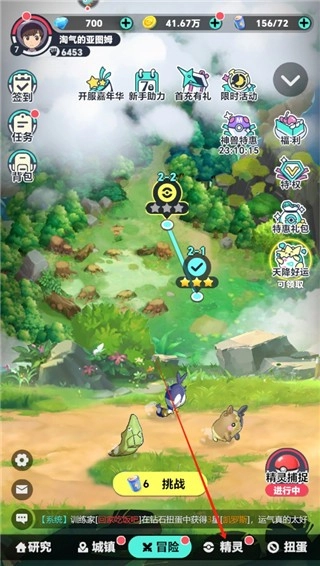 进入游戏,点击主界面下方的精灵系统中