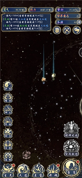 目前最核心的玩法,能获取天道意志以及各类材料,一个星系探索完毕就可以前往下一个星系,无需等待,除非你的战力即将达到碎片的要求。