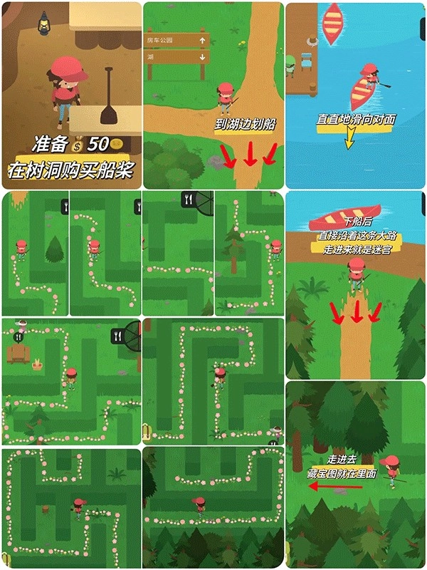 走迷宫:50去湖边划船去对面走迷宫,在迷宫的尽头
