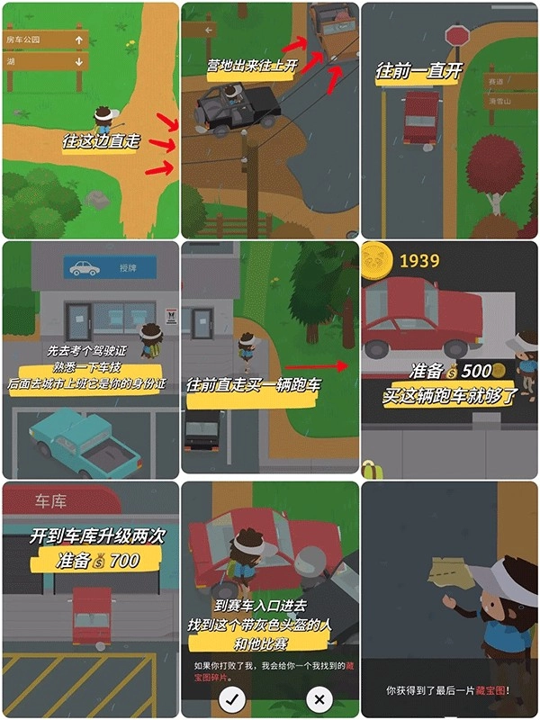 赛车玩法:先花1200买车,再用500升级,准备好700后,就去赛场找戴灰色头盔的人比赛吧。