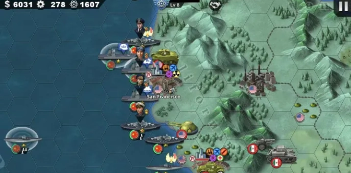 美国堪称最容易上手的国家,没有其他国家能与之相比。1950年北约能形成优势,关键就在于美国的支撑。游戏开局时,华盛顿和纽约这两座城市可以直接建造地标建筑。后期科技点出现溢出的情况,并不意味着科技类地标就失去了价值。这类地标能加快升级进度,让玩家更早解锁导弹发射场。作战策略上可以采取两线出击,同时在欧洲和日本展开登陆行动。在此过程中,必须全力支援日本和欧洲,不然它们很可能被敌方打垮。非洲地区虽然只有两座城市,但也不能轻视,务必将苏联在非洲部署的兵力彻底清除。