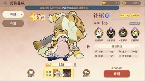 新手可以优先给核心武将(比如许褚)升级,用金币就能提升等级,升星之后还能解锁更厉害的技能,进一步强化战斗力。