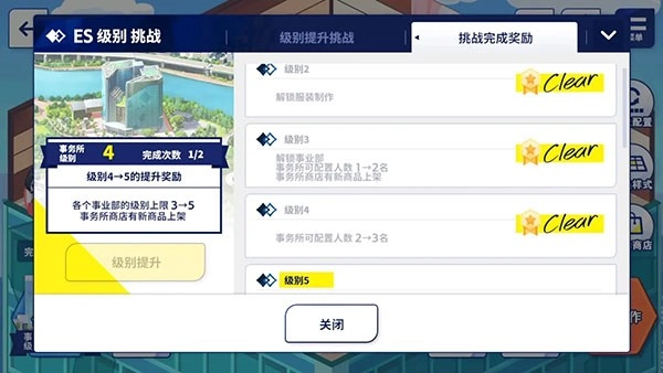 在主页面点击左下角的任务列表,就能打开事务所升级任务界面。每完成一个任务,事务所等级就会提升一级,并且每个等级都对应着不同的奖励。