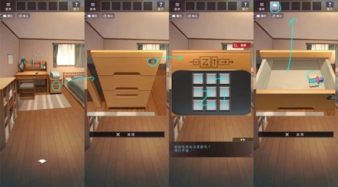 回到卧室后,依照提示拉开抽屉,从中取出信纸和线轴;接着开始写信,具体操作是选中信纸,再点击桌面上的笔。