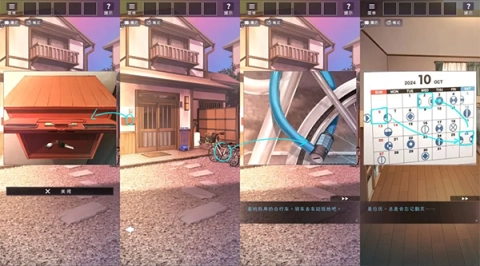 和幽灵交谈后走到家门口,从邮箱中取出自行车钥匙,再查看日历上的提示以获取自行车的解锁密码。