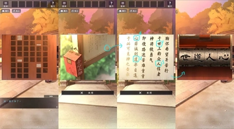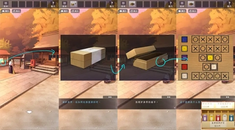 接下来和神主对话领取箱子,接着在箱子上查看提示并把护身符排列好。