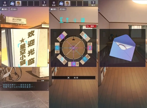 之后返回后山,把福纸浸入水中来显现图案,通过观察水里的发光点找到储物柜钥匙,再去车站打开储物柜拿到折纸。