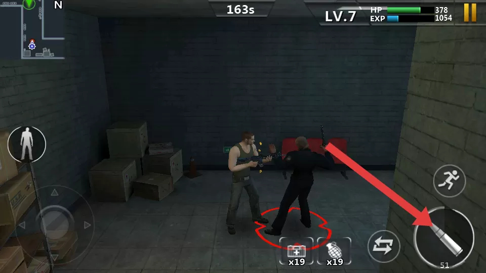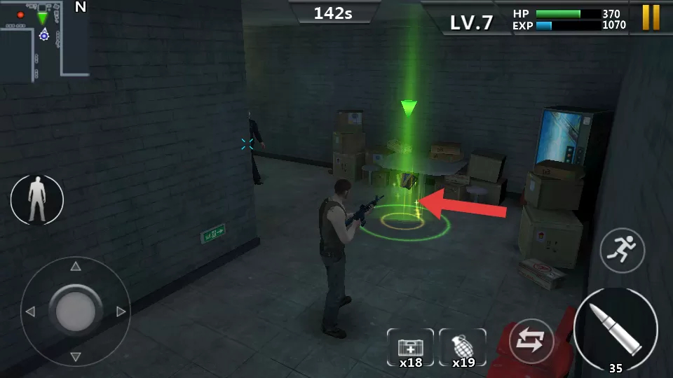 1. 踏入室内战斗场景后,首先留意屏幕上方的生命值和经验值面板,着重熟悉基础操作,通过点击射击按钮,运用枪械对敌人展开攻击。