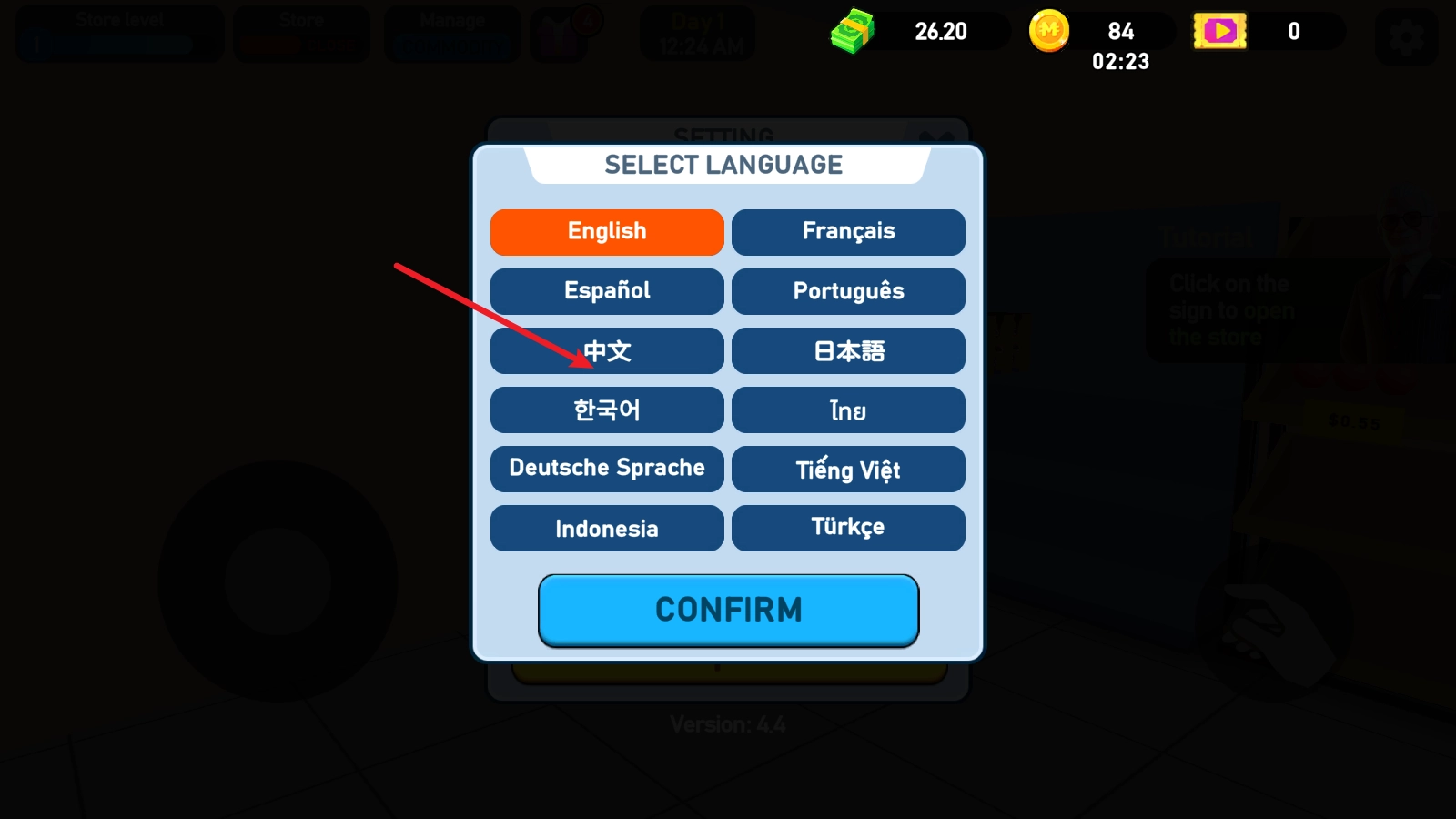 找到中文点击即可切换。