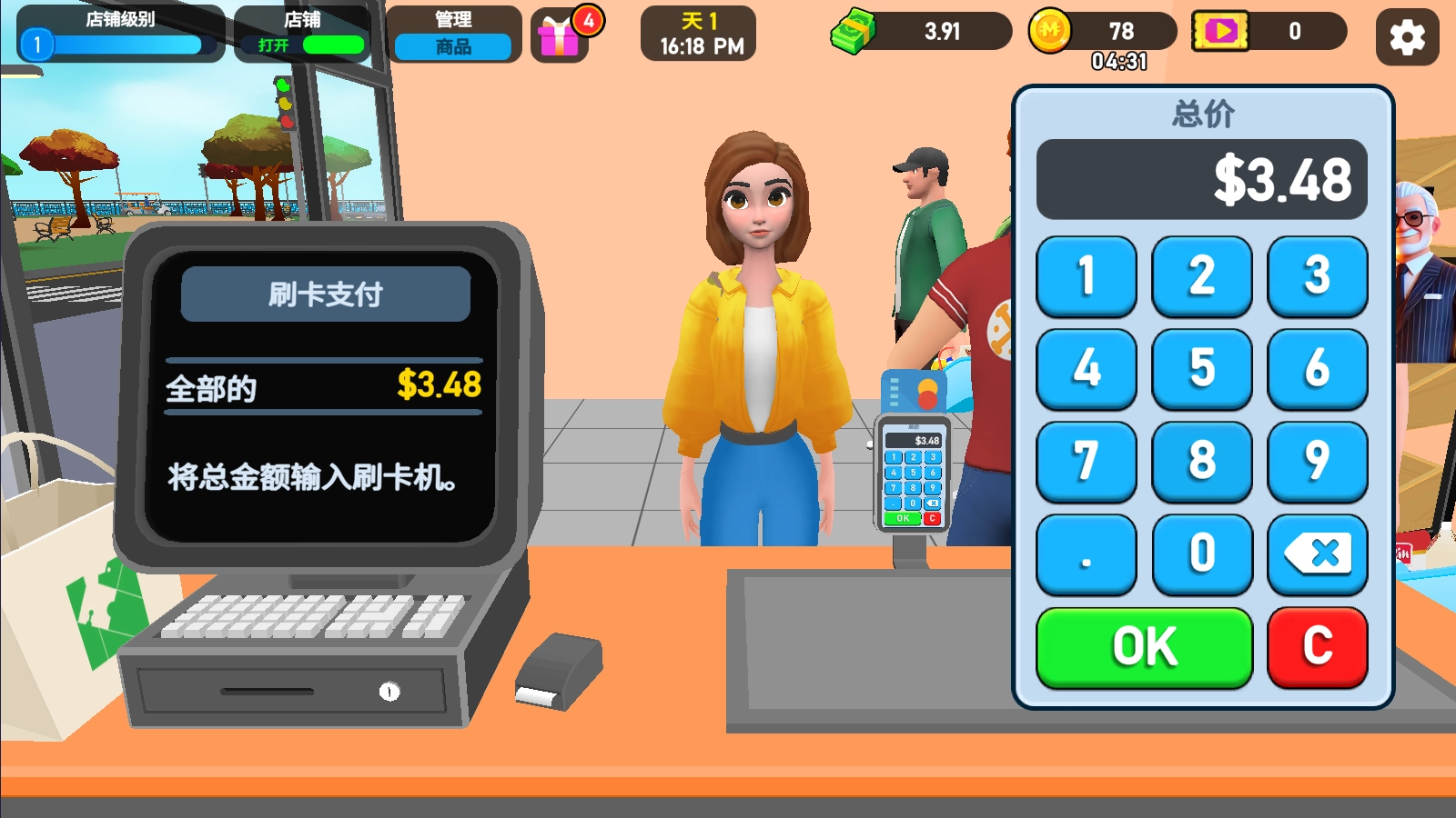可以体验经营超市的完整流程,这个过程十分有趣,像摆货、定价、收银之类的环节都很有意思。