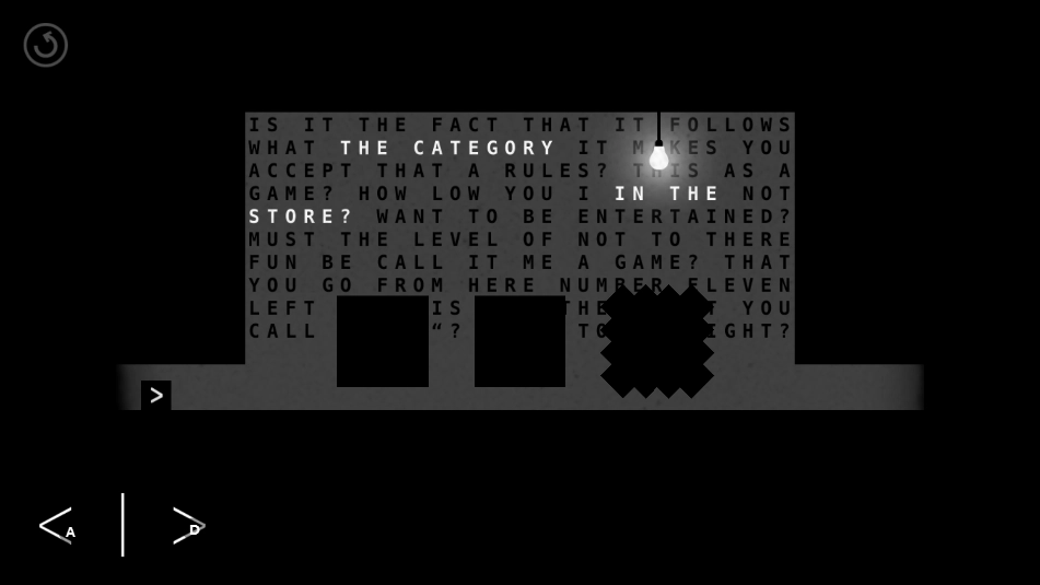 在这般沉重的背景设定下,游戏的整体色调也呈现出压抑的黑、白、灰。主角是若干黑色的方块。自然,你得借助它们,突破重重阻碍,抵达终点。