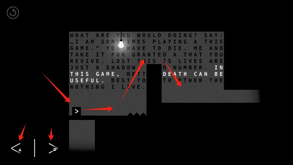 符号沿着这条路行进,可途中布满了障碍物,得经历几次死亡复活后,才能继续通过。