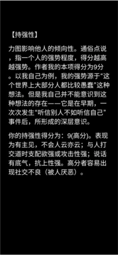 根据玩家提出的问题,“你了解自己吗”会自动生成玩家的人格特性数值。
