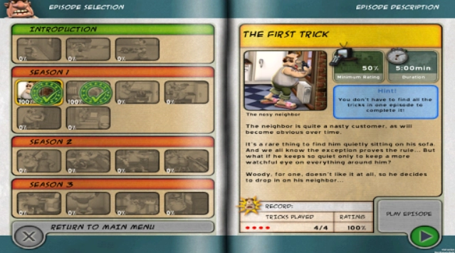 整蛊邻居,英文名Neighbours from Hell,是从Steam同名游戏移植过来的趣味整蛊游戏。游戏画风走无厘头搞笑路线,加上搞怪的整蛊玩法,能让你收获超快乐的体验!在游戏里,玩家要扮演主角伍迪,挖空心思整蛊坏邻居——先搜寻房间里能用的道具布置整蛊陷阱,再看邻居被整后气呼呼的样子!