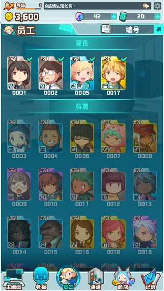 游戏里有不少外形各不相同的员工,每个员工都具备独特的个人特点。