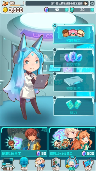 所谓员工就是公司最宝贵的资产,游戏里除了俊男靓女,还有宅男御姐、拟人化动物,甚至三国名将都能为你所用帮你赚钱!50多位角色各有专长与技能,赶紧来组建你的梦幻团队吧!