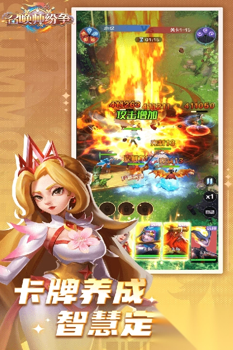 《召唤师纷争》是一款主打策略的3D卡牌乱斗游戏。依托U3D引擎打造,凭借精致唯美的美术风格与炫酷华丽的技能特效,为玩家呈上一场沉浸式的游戏视觉盛宴,带来极具冲击力的感官享受。核心玩法以放置冒险为核心,战斗过程自动推进,关键技能可手动释放,操作门槛低,新手也能快速上手。